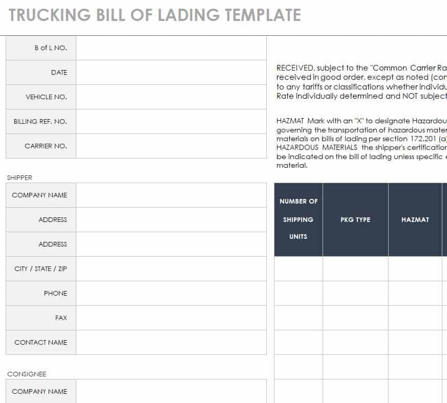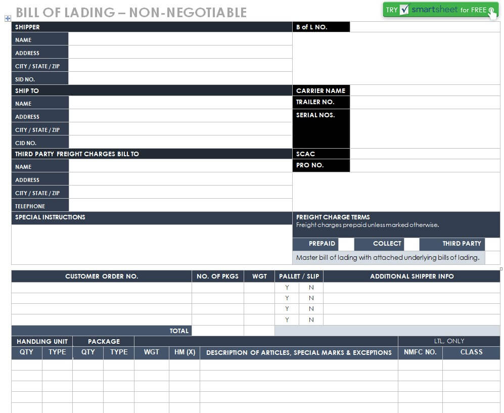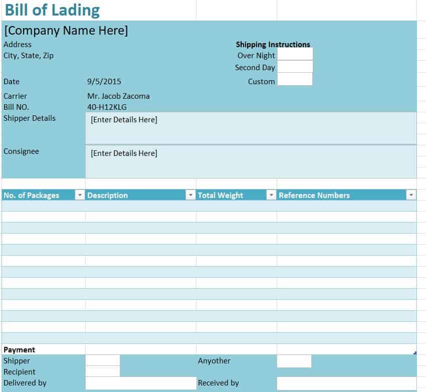 Bill of Lading Templates Excel