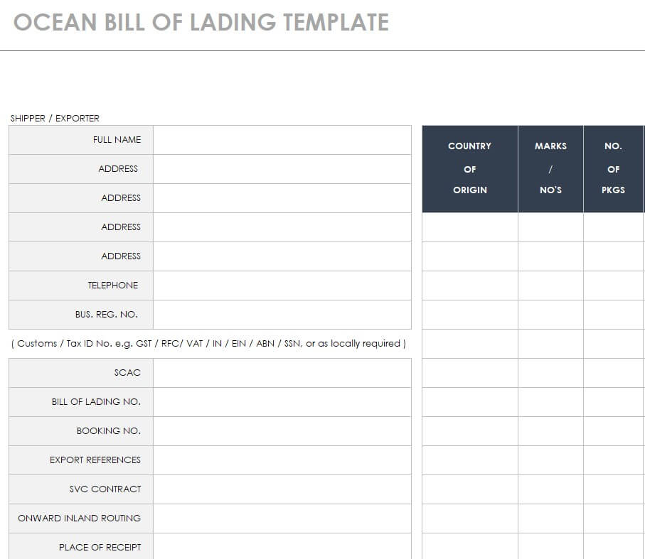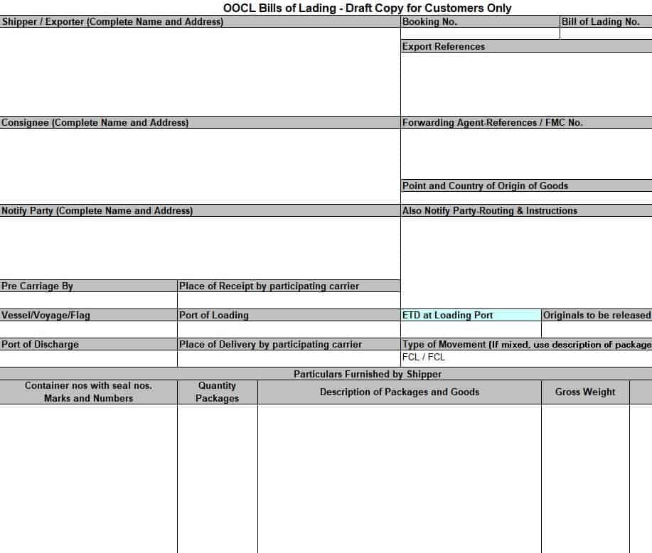 Ocean Bill of Lading Excel Template