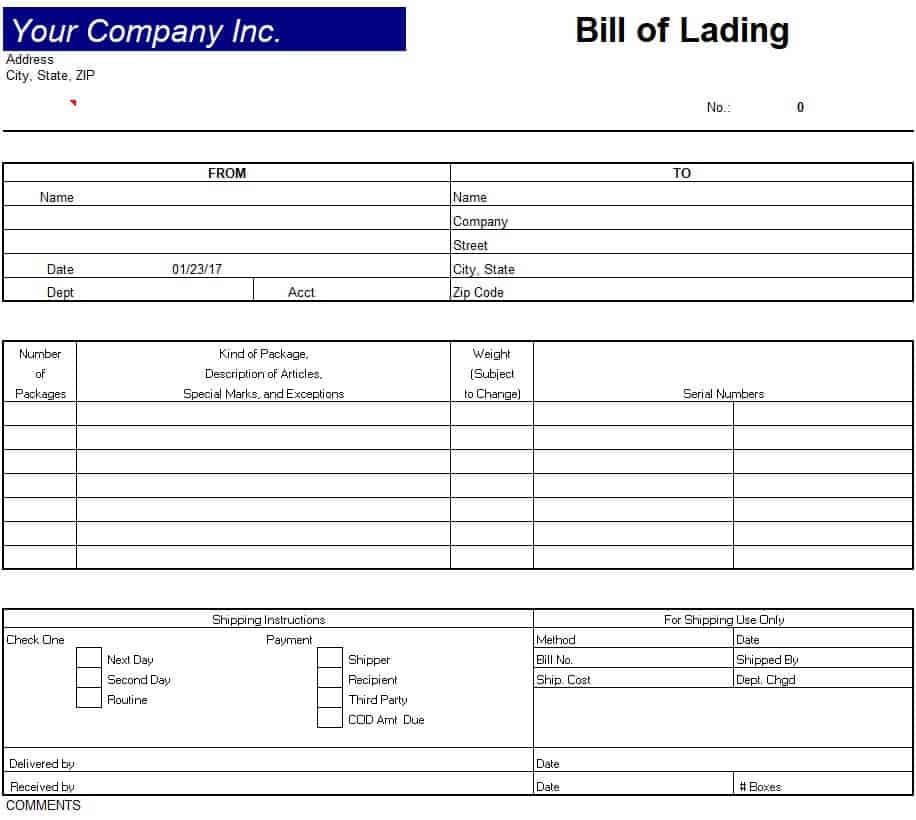 Company’s Bill of Lading Template