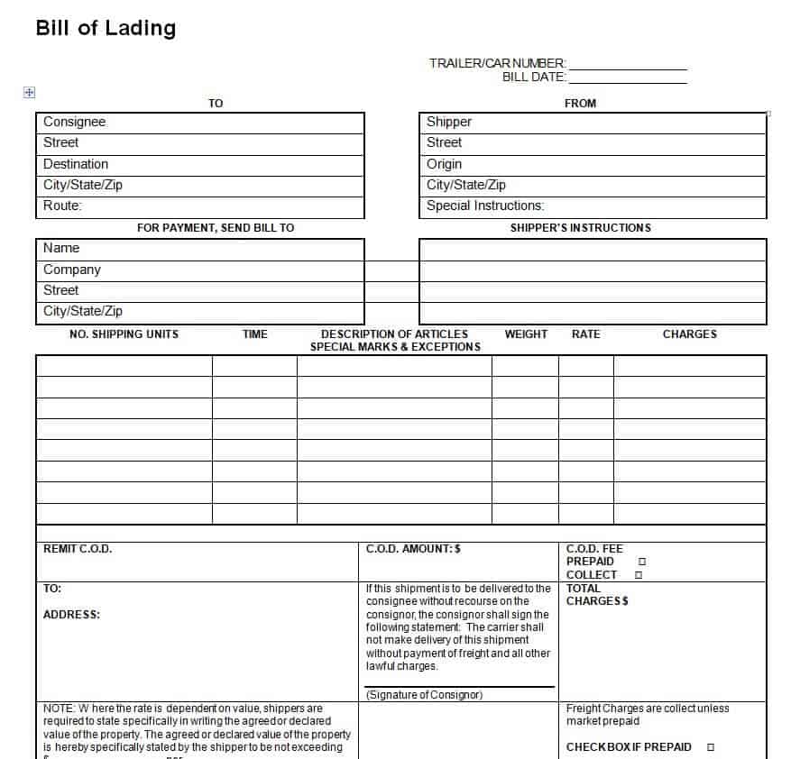 Bill of Lading Templates Word