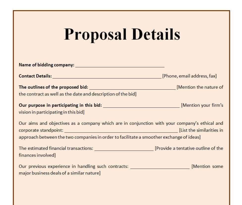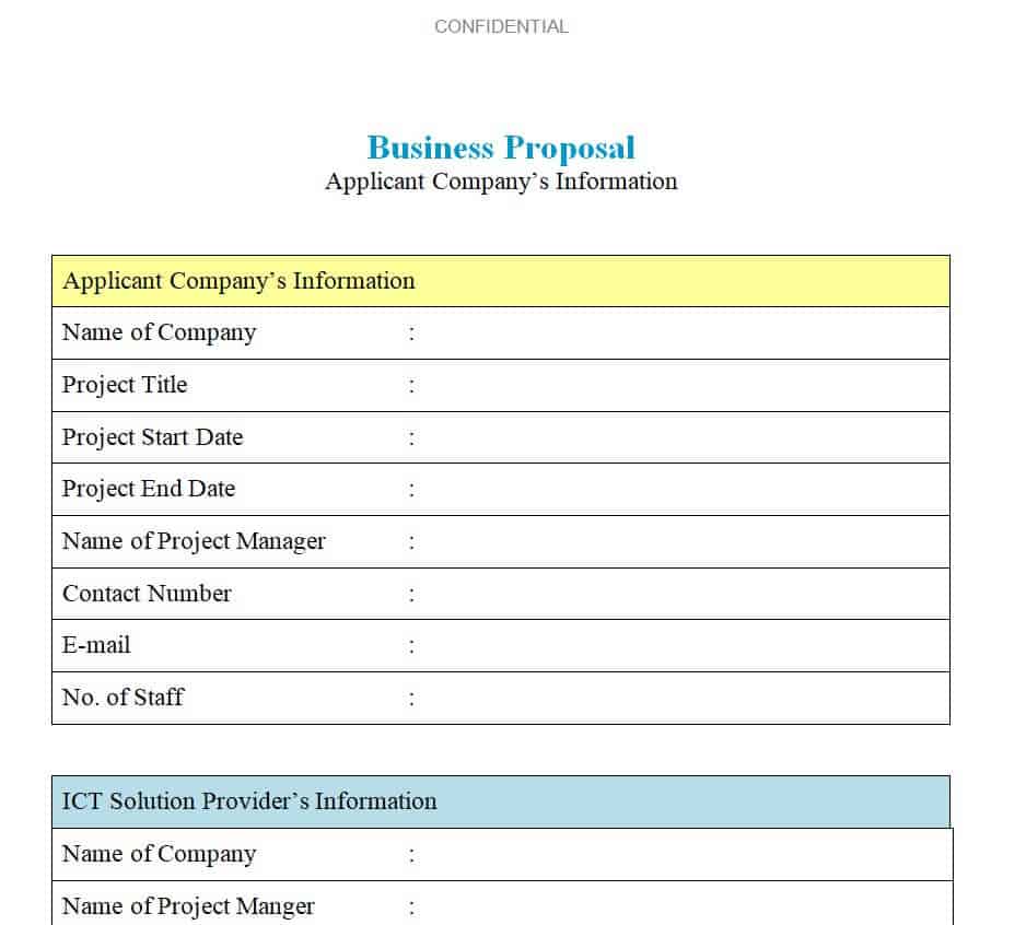 Business Proposal Form Layout in WORD