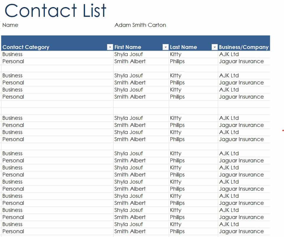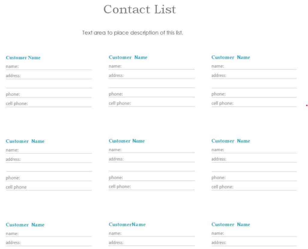 Do you want to keep track of all your personal and official contacts in a best-organized manner? Simply create a contact list right now by using our free printable contact list templates. A contact list is a document that allows you to note down the contact details of different people for a particular purpose. It is a useful tool for people connected with all fields of life. A general individual person can also use this tool to note down personal contacts to reach people in times of need. A neat and clean contact list can be made both in Microsoft Word and Excel programs via ready-made contact list templates offered here.