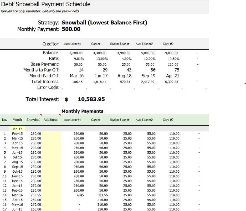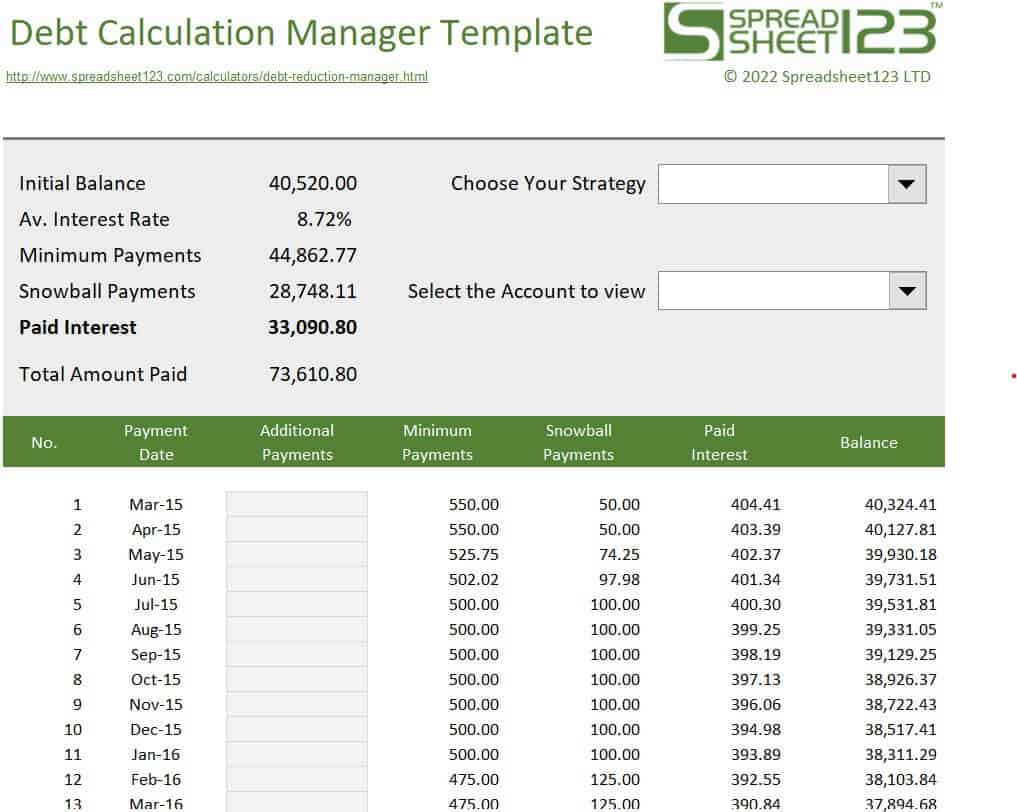 Paying out debt is not an easy task but the use of a debt reduction calculator can help you get out of debt before long. A debt snowball spreadsheet is a simple MS Excel spreadsheet that helps you to come up with a strong and favorable plan to pay off all your debt by saving interest amount. One can generate a debt reduction calculator in excel if expert in excel. Hence, we recommend a beginner get help from a debt reduction calculator template or format to create an error-free and easy-to-use debt reduction calculator or debt snowball spreadsheet.