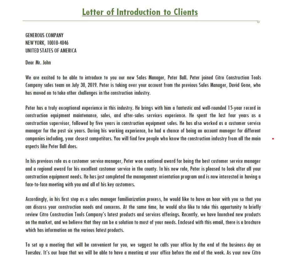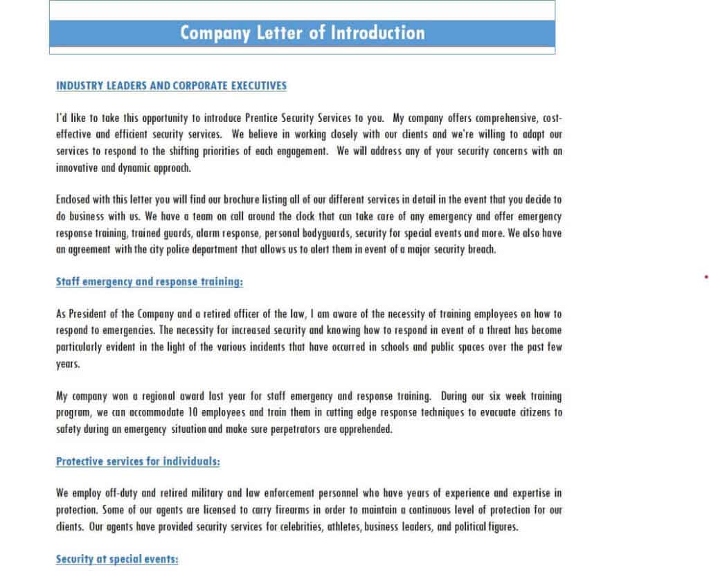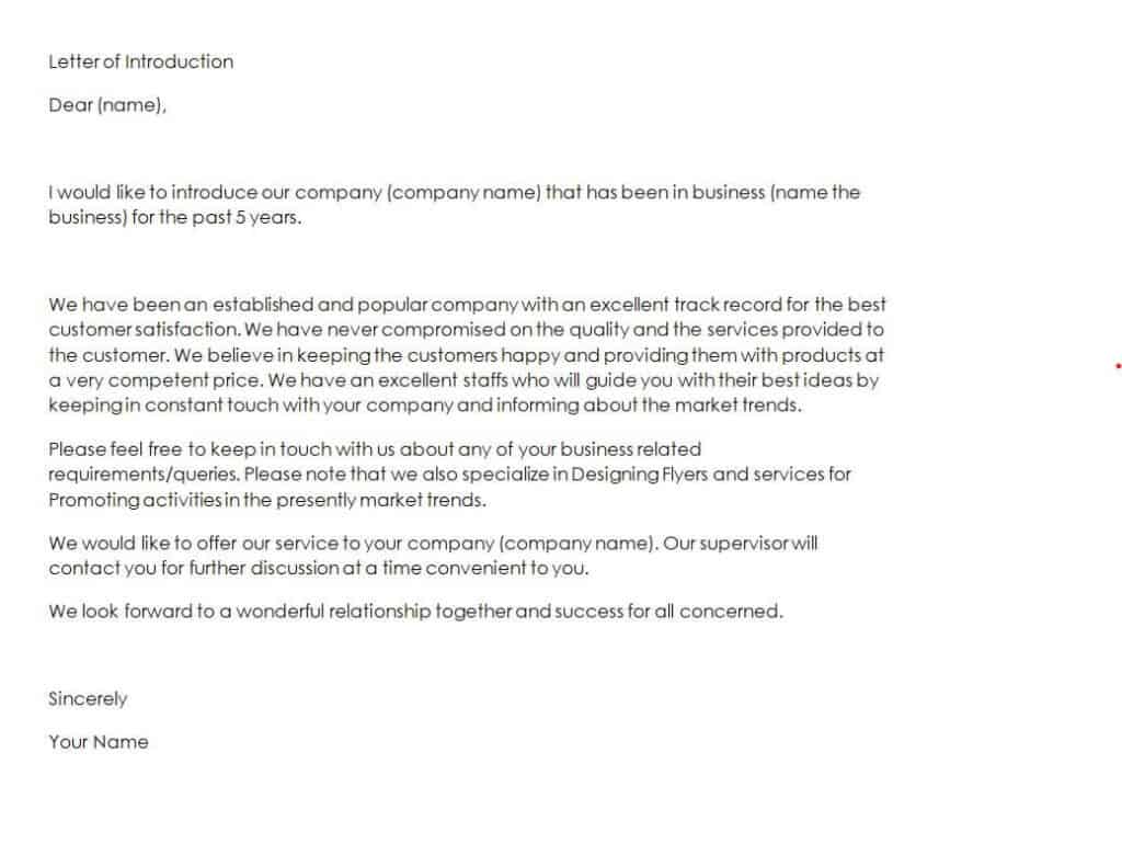 Letters of introduction are a vital part of business writing because they play a vital role in developing a business or company by generating new connections and customers. A company or individual seller may write such a letter to a potential customer in order to offer products or services. Similarly, a sales representative or customer care officer may also write a letter to customers or another business entity to introduce himself as well as the company before providing services. It helps readers to know about the company, its structure, and other information that readers may need to know.