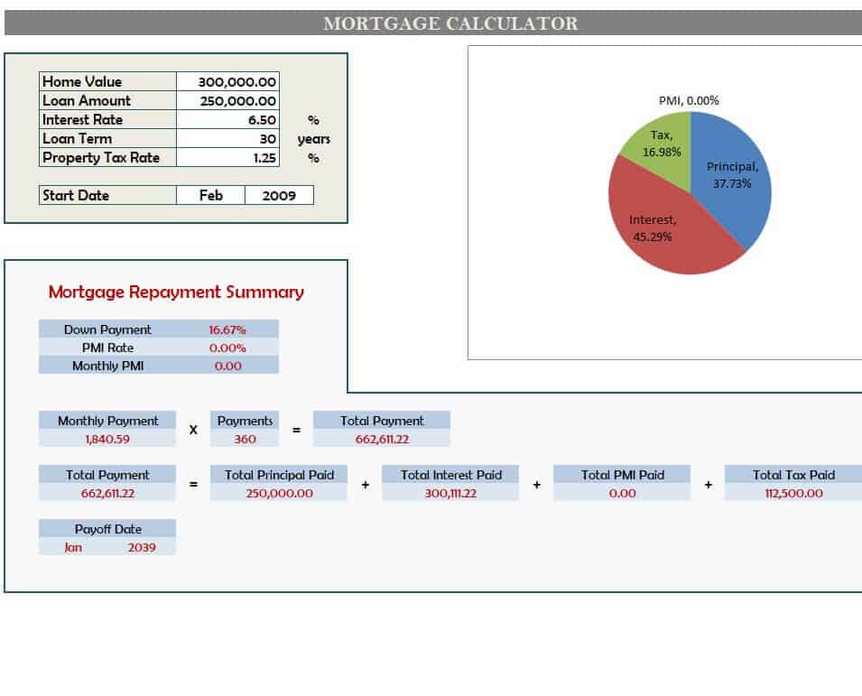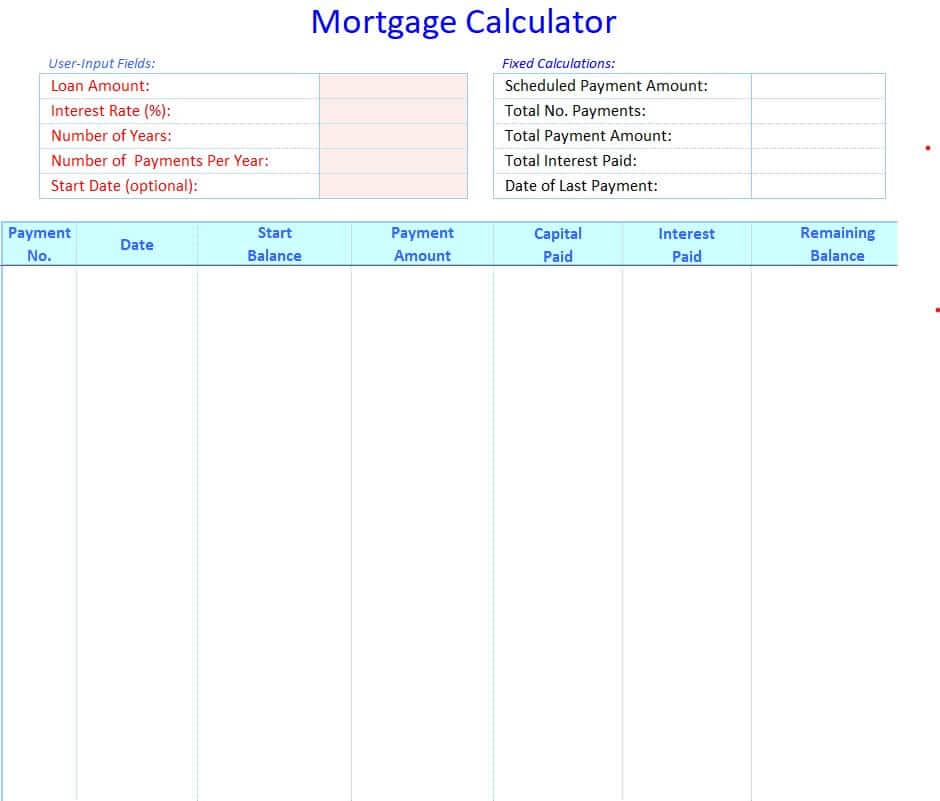 Home Mortgage Calculator Excel Template