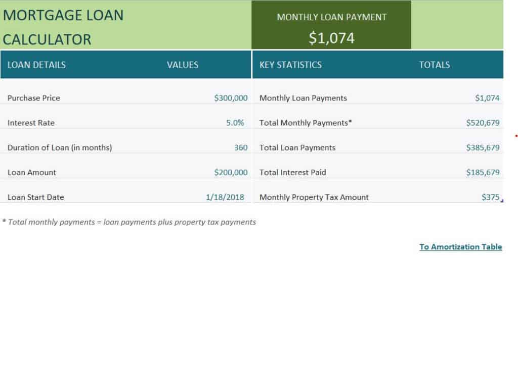 Online Mortgage Loan Calculator Sheet