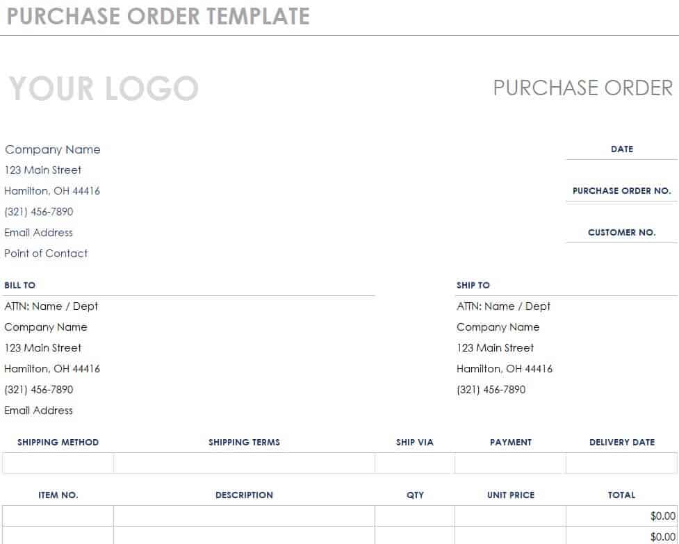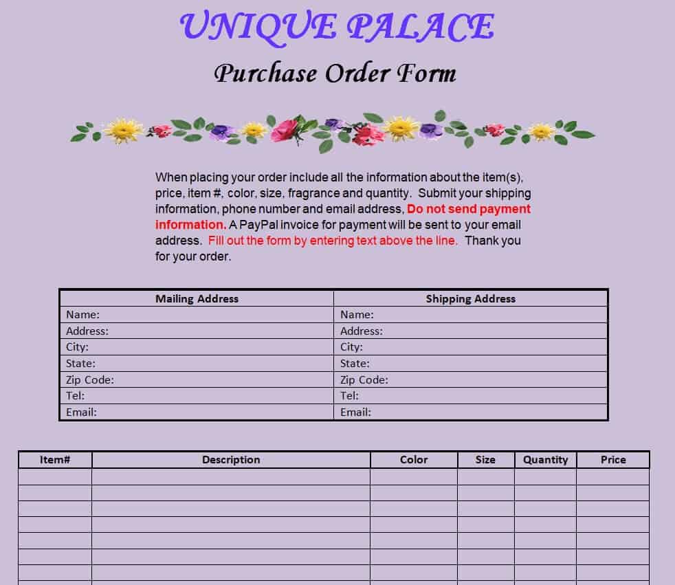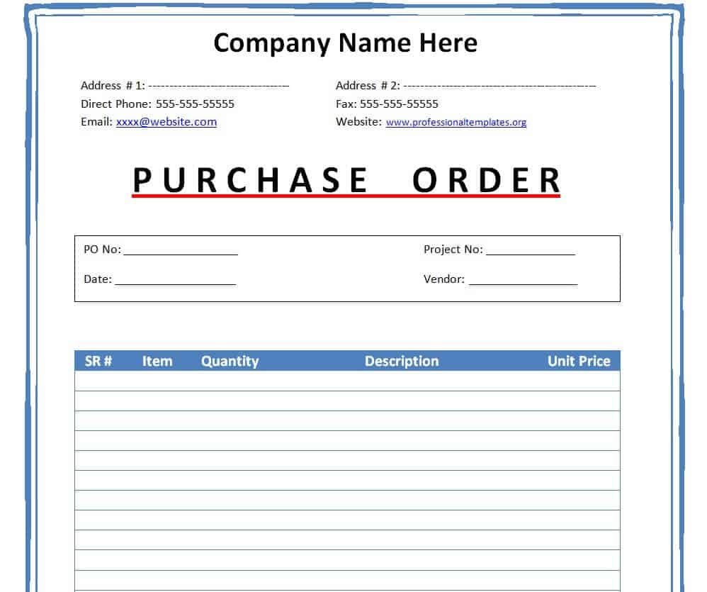 Business Purchase Order Template Excel