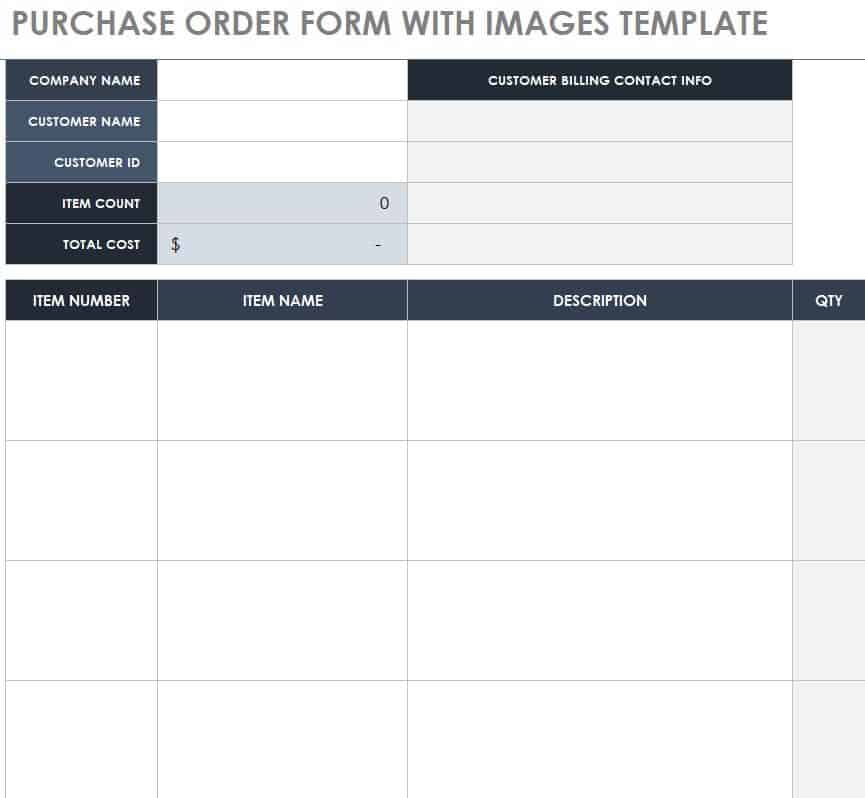 Purchase Order Form with Images Sample