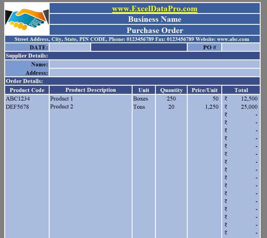 Purchase Order Excel Template