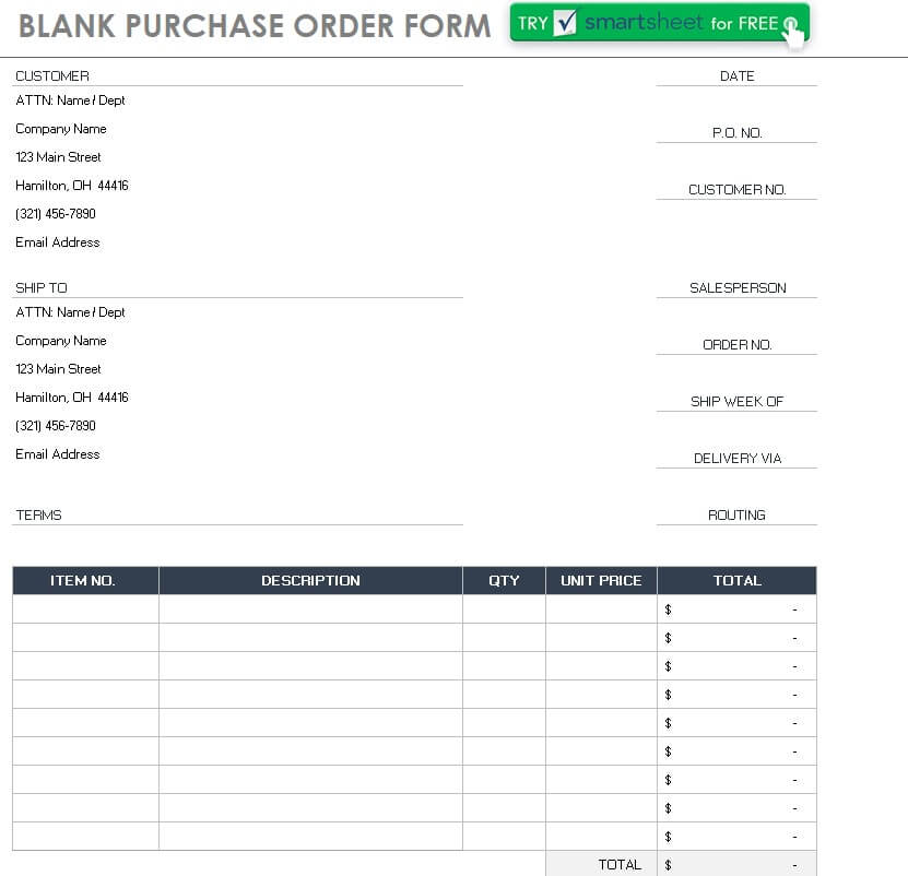 Blank Purchase Order Form Example