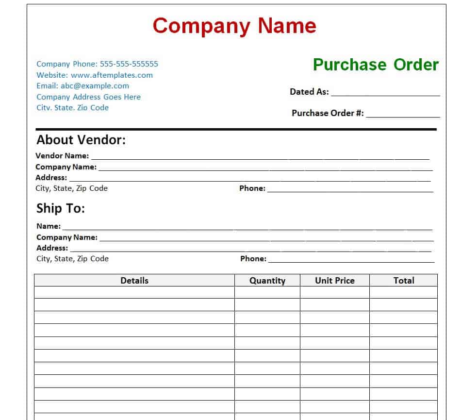 Company’s Purchase Order Template