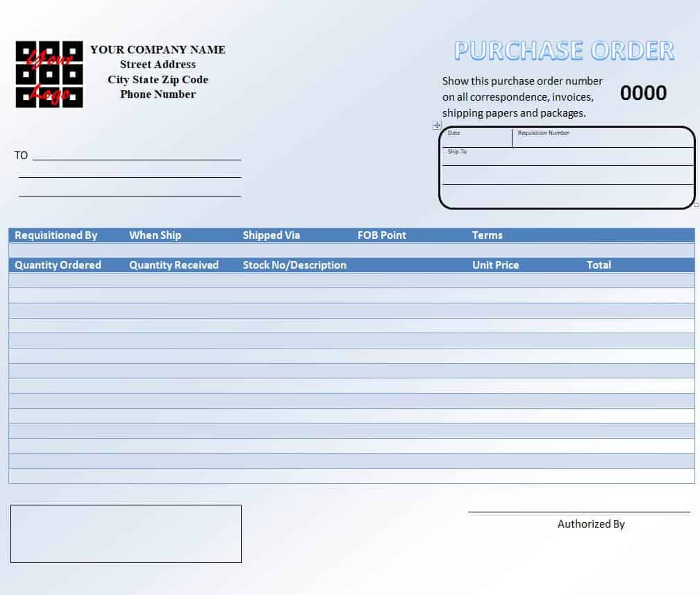 Authorized Purchase Order Template Printable