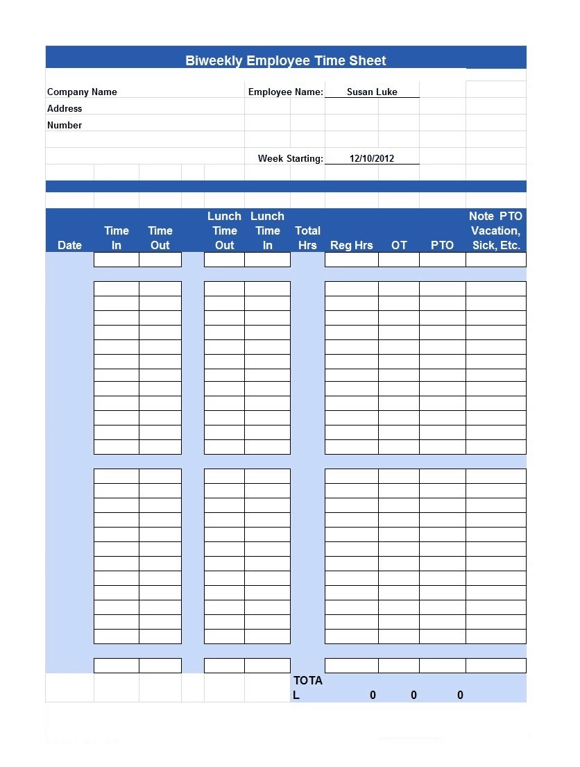 Biweekly Employee Time Sheet Template: