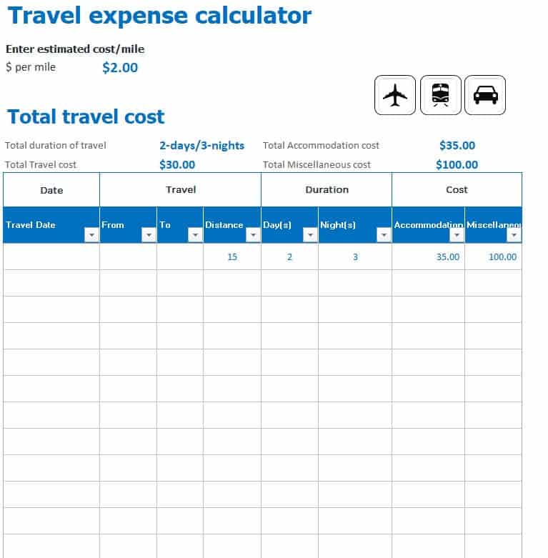Travel Expense Calculator Template Excel