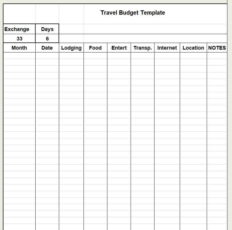 Simple Travel Budget Template Excel Sheet
