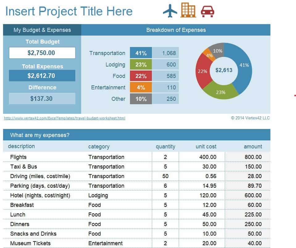 Standard Travel Budget Excel Spreadsheet