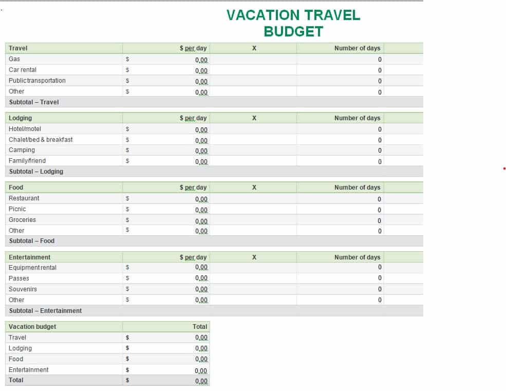 Online Vacation Travel Budget Template in MS WORD