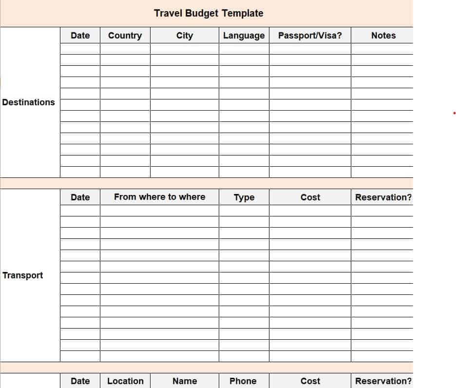 Blank Simple Travel Budget Template